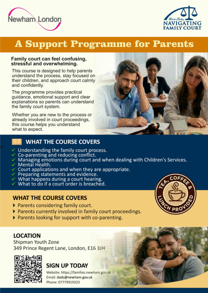 Whether you are looking for a structured support programme or a specialised workshop for fathers, these events provide practical guidance and emotional support to help you manage the complexities of court proceedings.